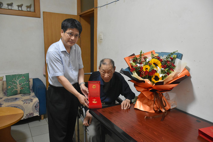 因老黨員身體健康等原因,劉嵩書記親自將“光榮在黨50年”紀念章送至其家中,并代表公司黨組織對老黨員幾十年來忠誠黨的事業、踐行黨的宗旨,兢兢業業為黨工作致以崇高敬意和衷心感謝。