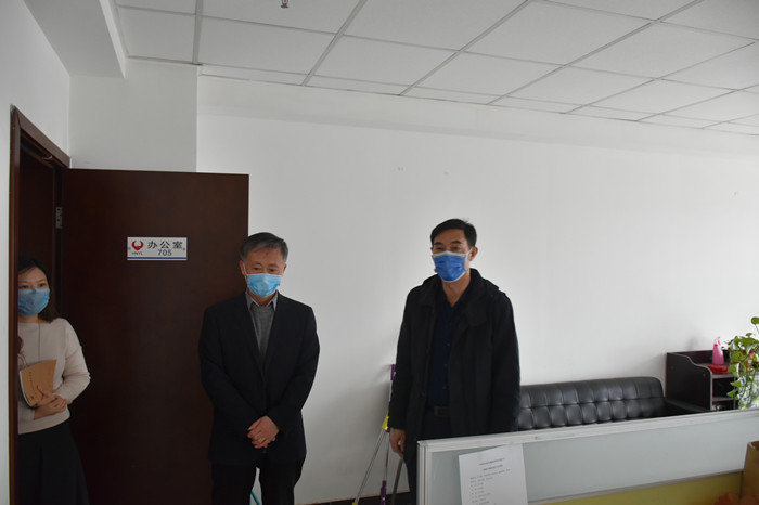 胡龍廷副主任一行在公司董事長、總經理劉嵩同志的陪同下,先后前往公司設置的體溫檢測記錄崗、臨時隔離點、防疫物資儲備區、公共衛生區及辦公室等區域細致查看各項防控措施的落實情況。劉嵩董事長詳細介紹了公司各項疫情防控舉措和安全有序復工情況以及疫情期間各分公司的經營狀況、安全形勢。在聽取了劉嵩董事長匯報后,張衛東副巡視員、王玉生局長、柴志芳書記分別對公司復工復產提出了具體要求。