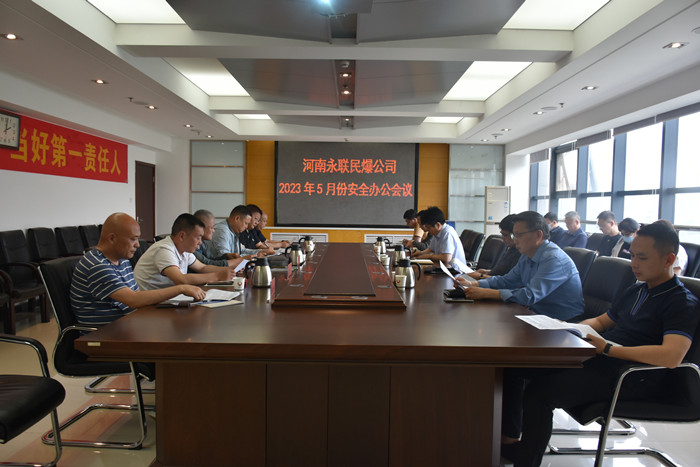 2023年5月23日,河南省永聯(lián)民爆器材股份有限公司召開了5月份安全辦公會議,公司領導班子、安委會成員、安委會辦公室成員以及嵩縣、靈寶市、舞鋼市、淇縣、鄧州市、方城縣等6家分公司負責人參加了會議。會議由公司副總經(jīng)理張鐵飛主持,公司董事長、總經(jīng)理劉嵩參加會議并講話。