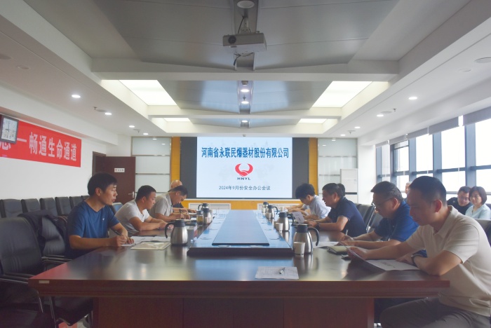 2024年9月27日,河南省永聯民爆器材股份有限公司召開了9月份安全辦公會議,公司領導班子、安委會成員、安委會辦公室成員以及新密市、登封市、輝縣市、寶豐縣、固始縣、義馬市等6家分公司負責人參加了會議。會議由公司總經理靳義國主持,公司董事長劉嵩參加會議并講話。
