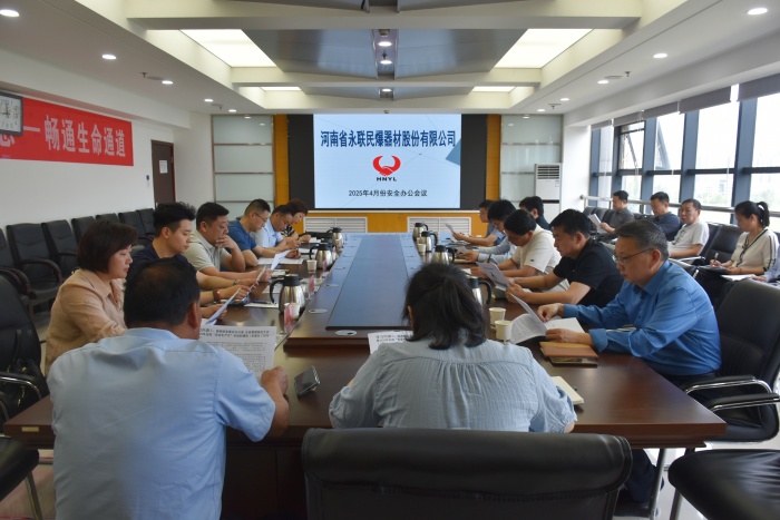 2025年4月29日,河南省永聯(lián)民爆器材股份有限公司召開了4月份安全辦公會議。公司安委會成員、安委會辦公室成員以及桐柏、欒川縣、安陽市、淅川、焦作市、信陽市平橋等6家分公司負責人參加了會議。會議由公司工會主席黃小虎主持,董事長劉嵩、總經理靳義國參加會議并講話。